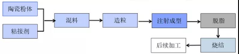 不過車到山前必有路,陶瓷注射成型(CeramicInjectionMolding,CIM)技術(shù)的出現(xiàn)與發(fā)展為氧化鋁陶瓷成型開辟了新道路。通過注射成型制備的產(chǎn)品,不僅尺寸精確可控,而且可實現(xiàn)大批量生產(chǎn),無需或只需少量的機械加工,大大降低了陶瓷的生產(chǎn)成本。