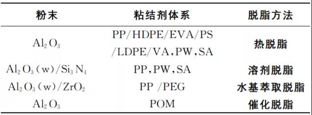 氧化鋁陶瓷注射成型常用粘結(jié)劑組分和相應(yīng)的脫脂方法